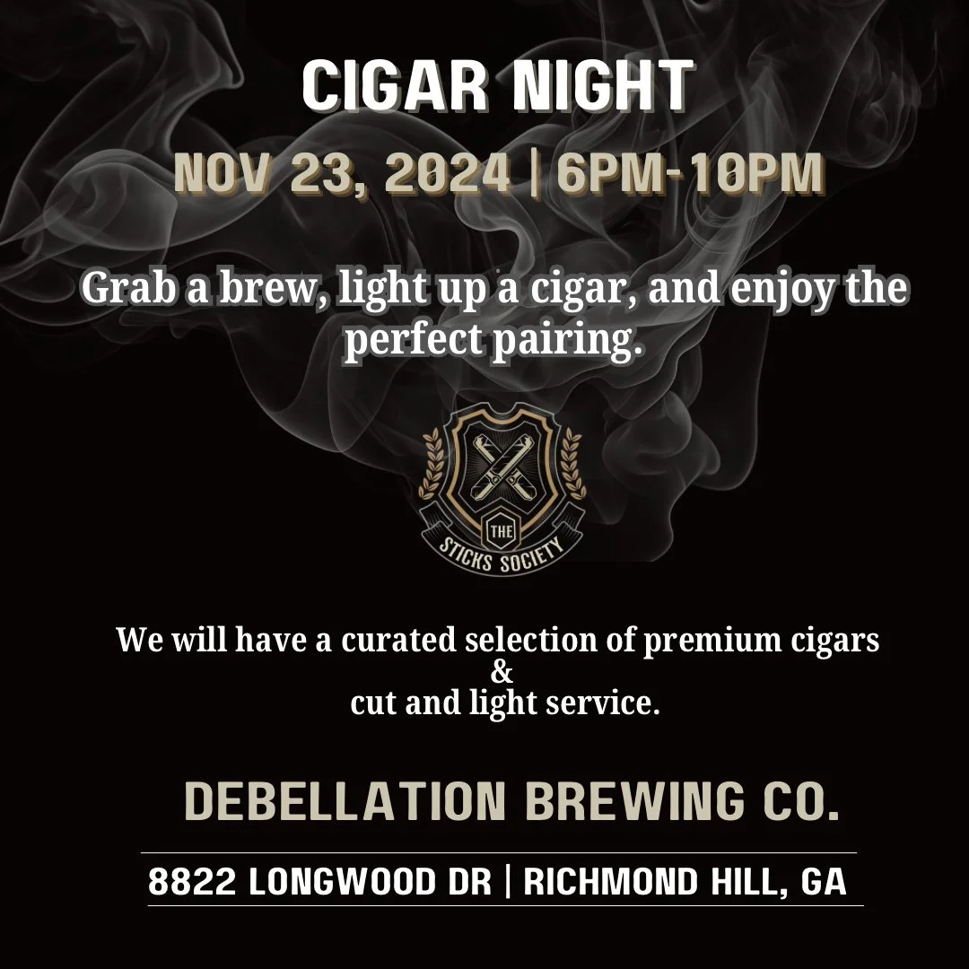 The Sticks Society is a mobile cigar service based out of Savannah who offers premium cigars along with light service and education. They will have a pop-up here for this event! You are of course welcome to bring your own cigars, but The Sticks Society is here if you need them. We will have some great bourbon, scotch, and beer options for pairing. We are looking forward to this event!