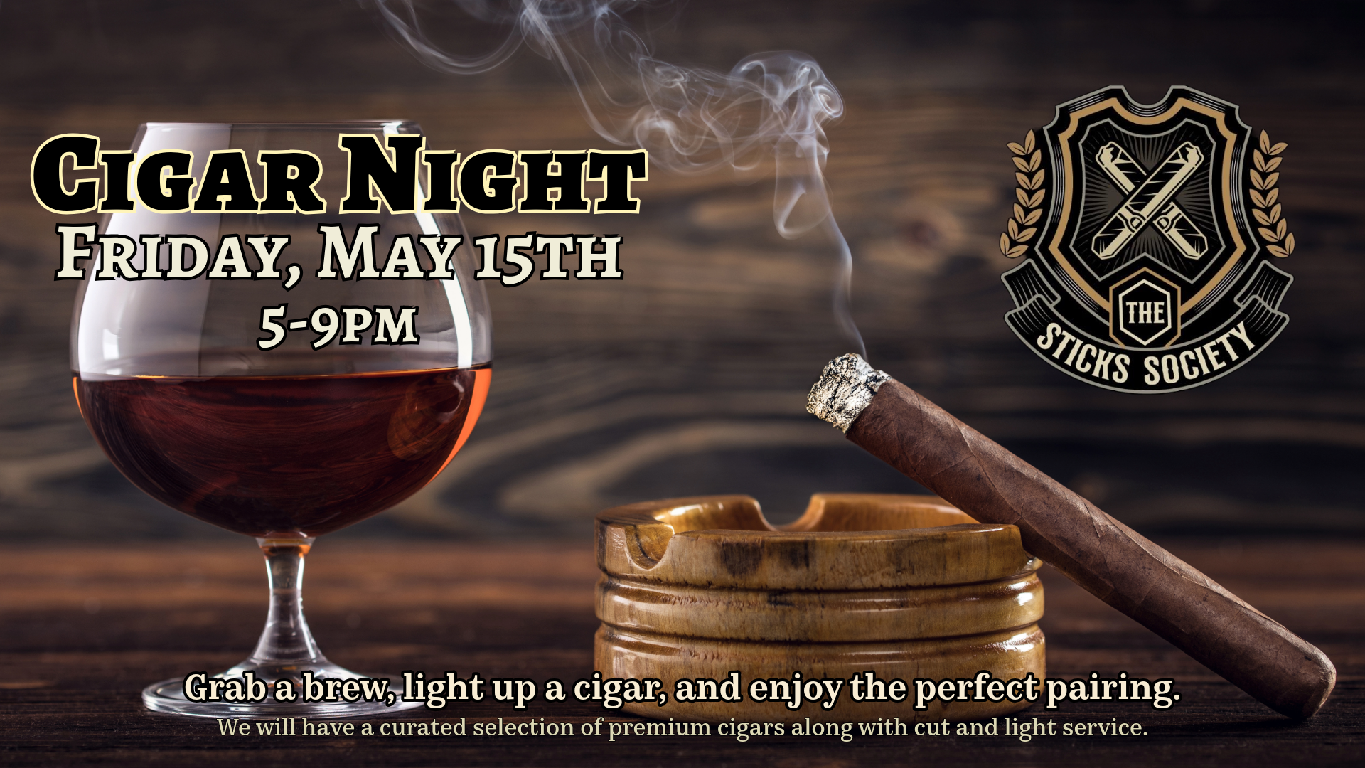 The Sticks Society is a mobile cigar service based out of Savannah who offers premium cigars along with light service and education. They will have a pop-up here for this event! You are of course welcome to bring your own cigars, but The Sticks Society is here if you need them. We will have some great bourbon, scotch, and beer options for pairing. We are looking forward to this event!