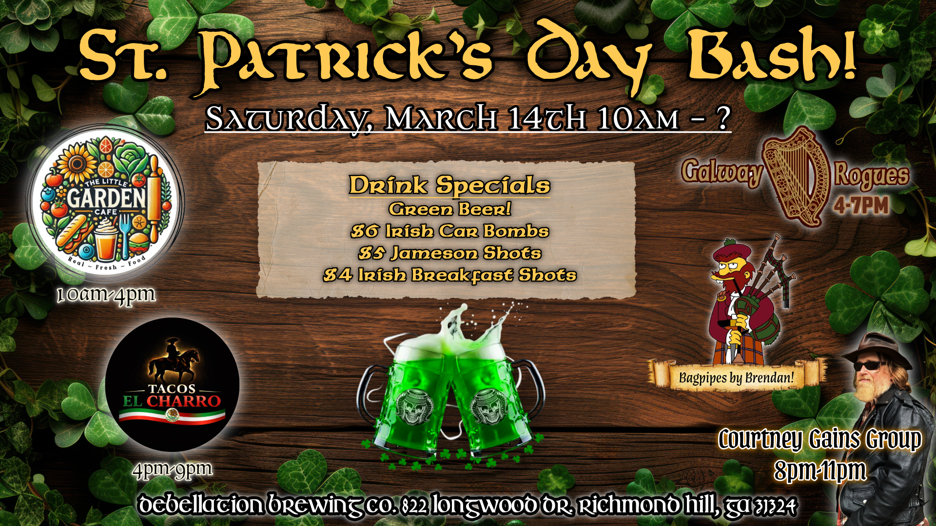 It's that time of year again! Time to get your green on and punish those livers! We'll have drink specials all weekend long, but Saturday will be the big day, starting bright and early at 10am!